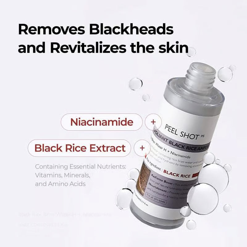 Reveal clearer, softer, more radiant skin with our 4-in-1 exfoliating ampoule—powered by Korean black rice, brightening niacinamide, and our signature Tryvytaly™ complex.